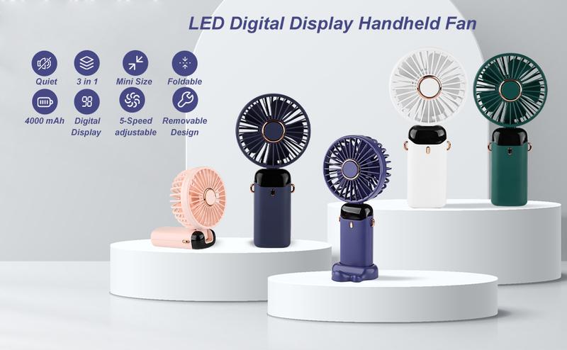 3 in 1 Hand Fan & 4000Mah Portable Fan,Mini, Foldableusb Rechargeable, Ldeal for Travel & Outdoor and Summer