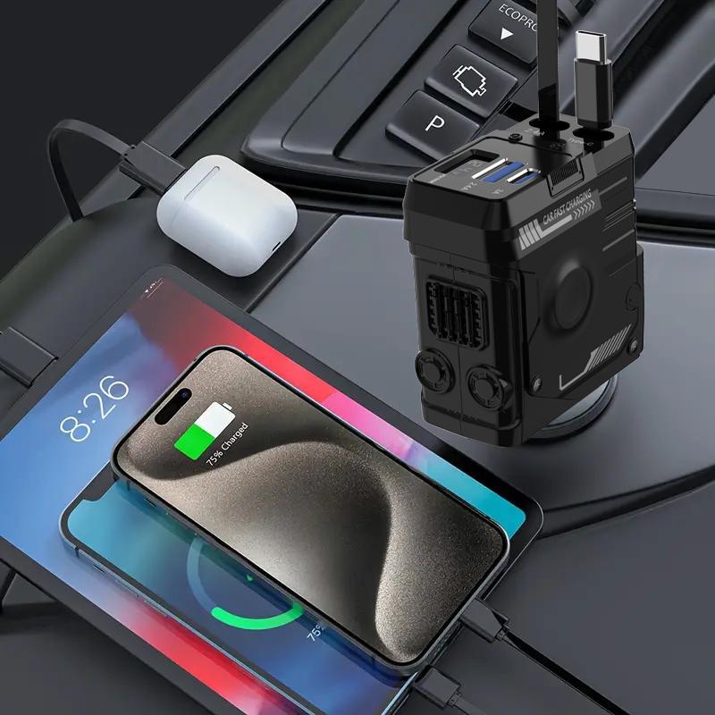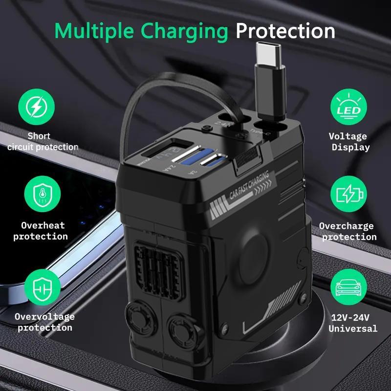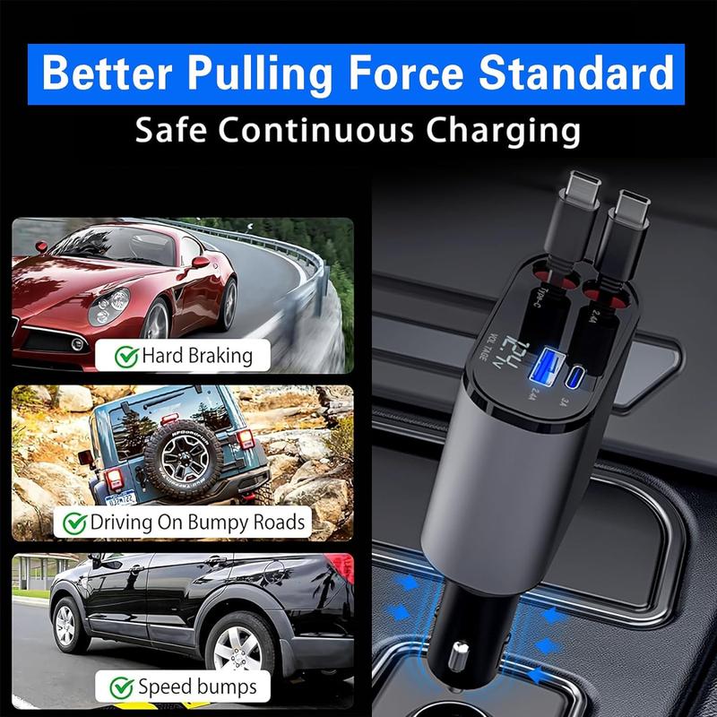 Retractable Car Charger 4 in 1(Updated)Usb C Fast Charging Adapter with Dual Charge Port, Lightning Cable, Compatible with Electronic Cellphone Mobile